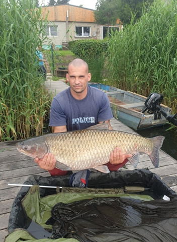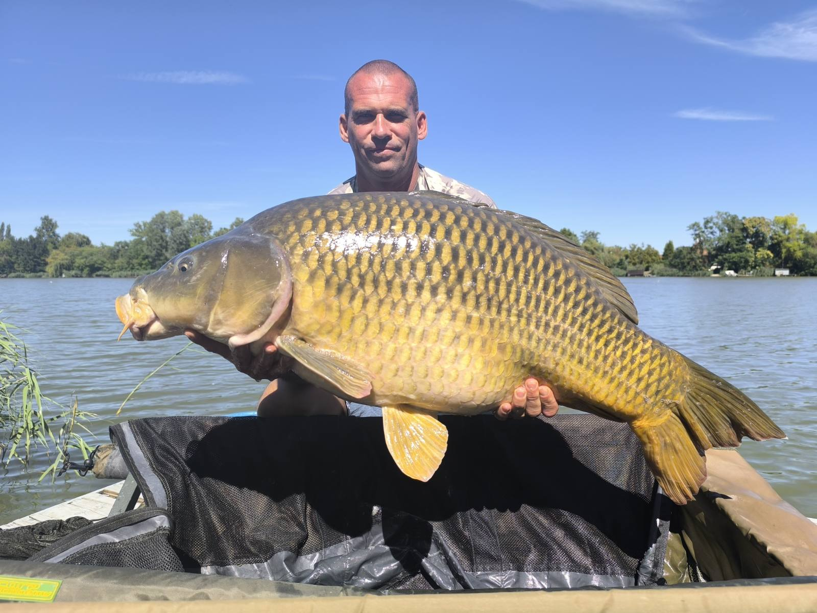 3,6 m-es 3,0 lbs bot, 0.20-as monofil zsinór, 2-es horog. Bojli csali és etetés. Derült idő, szélcsend, 10 perces fárasztás partról.