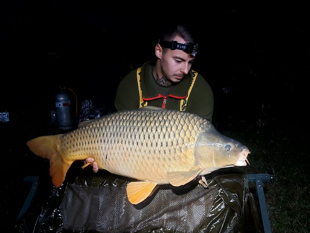 3,3 m-es bot, 0.30-as monofil zsinór, 4-es horog. Bojli csali és etetés. Szeles, felhős idő, 10-15 perces fárasztás partról.