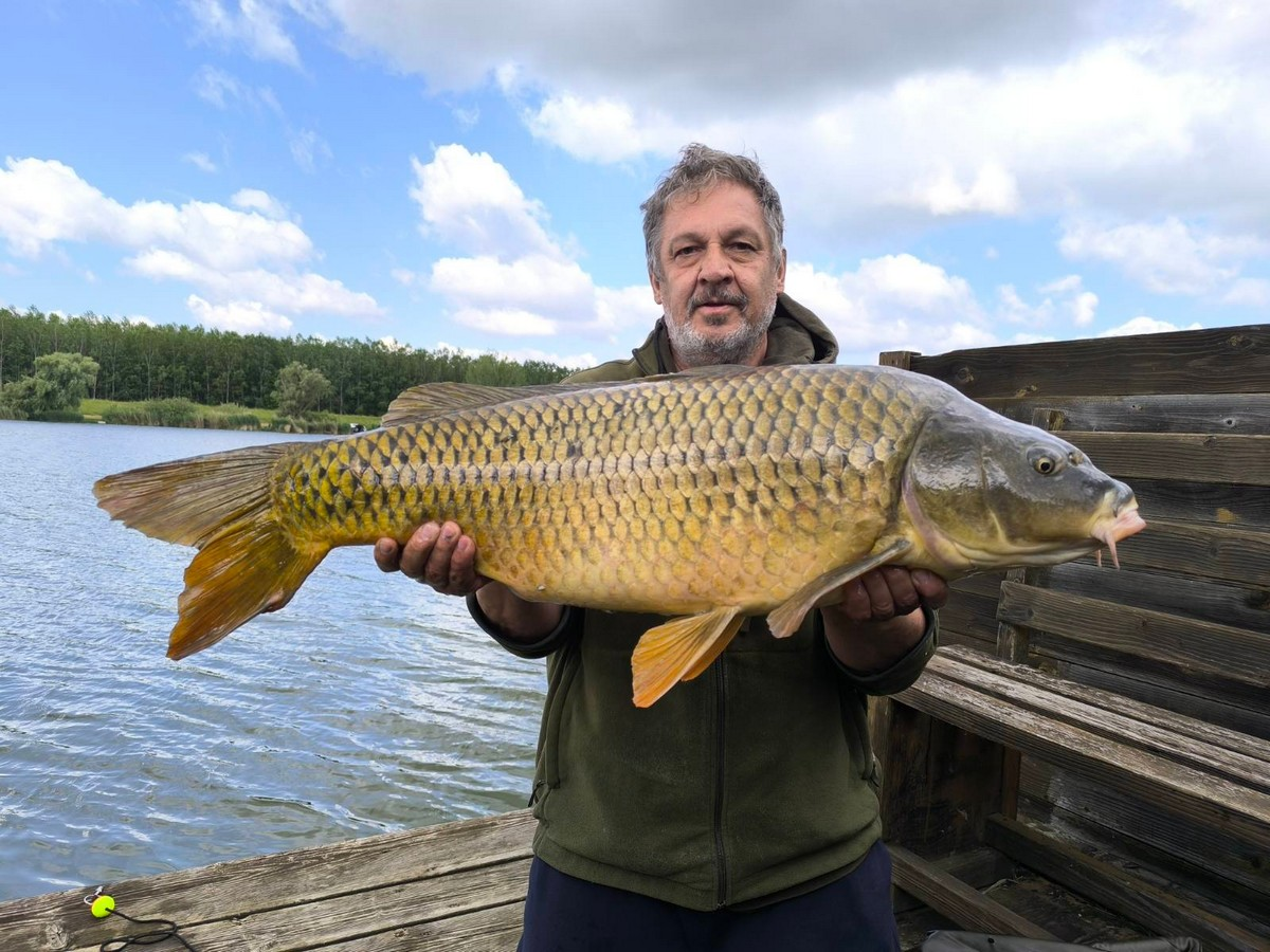 3 m-es 1,5 lbs bojlis bot, 0,35-ös monofil zsinór, 4-es horog. Bojli csali és etetés. Szeles idő, 20 perces fárasztás csónakból.