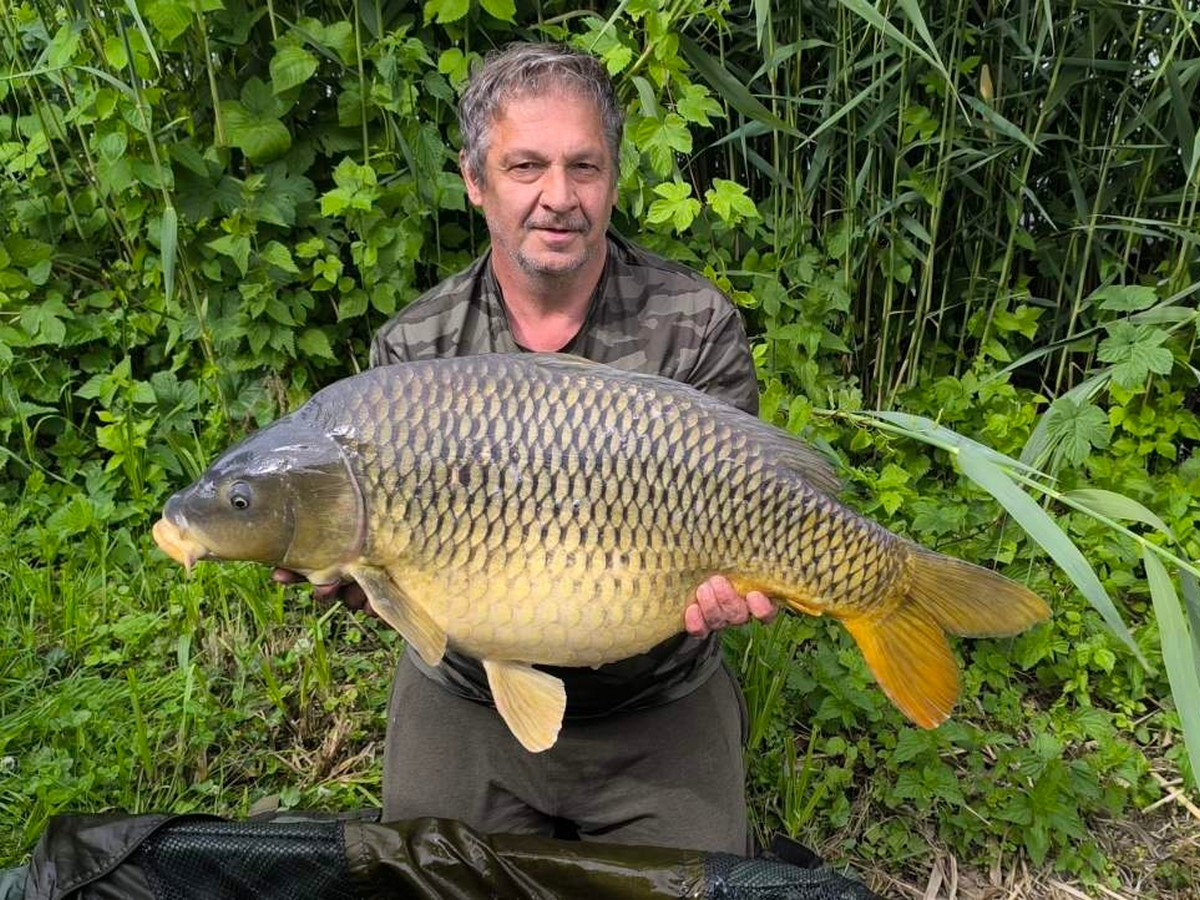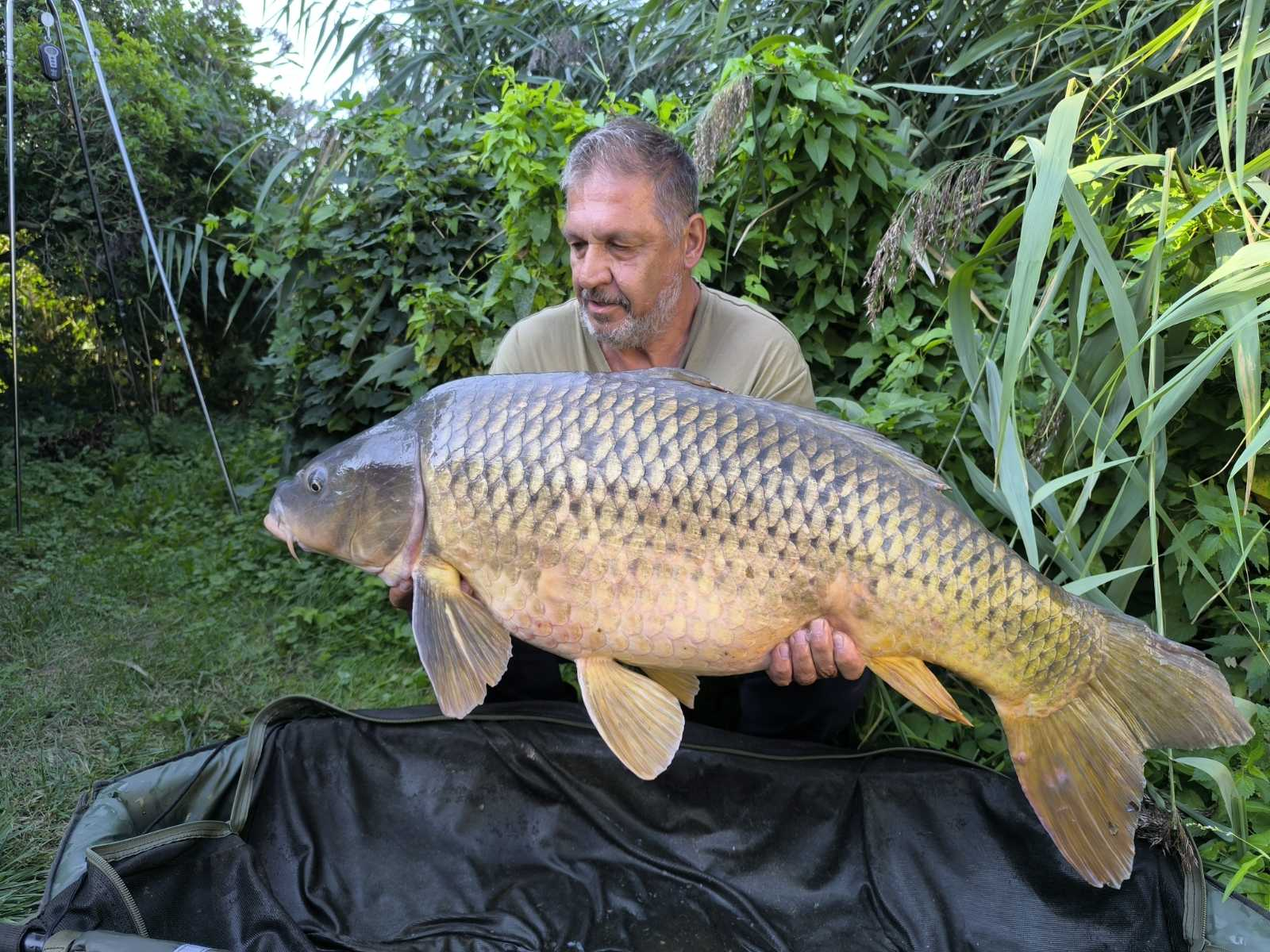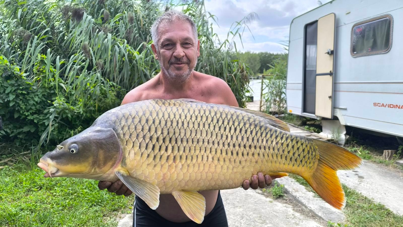 3 m-es 1,5 lbs bojlis bot, 0,35-ös monofil zsinór, 2-es horog. Tigrismogyoró csali és etetés. Napos idő, szélcsend, 20 perces fárasztás csónakból.
