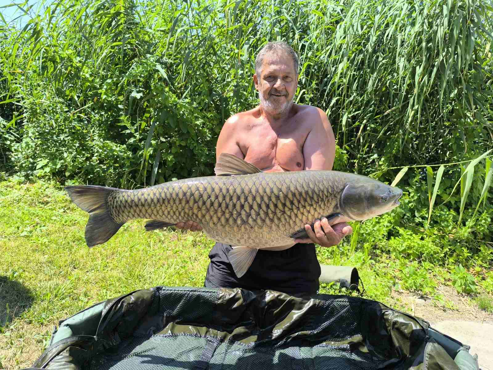 3 m-es 1,5 lbs bojlis bot, 0,35-ös monofil zsinór, 4-es horog. Bojli csali és etetés. Derült idő, gyenge szél, 15 perces fárasztás csónakból.