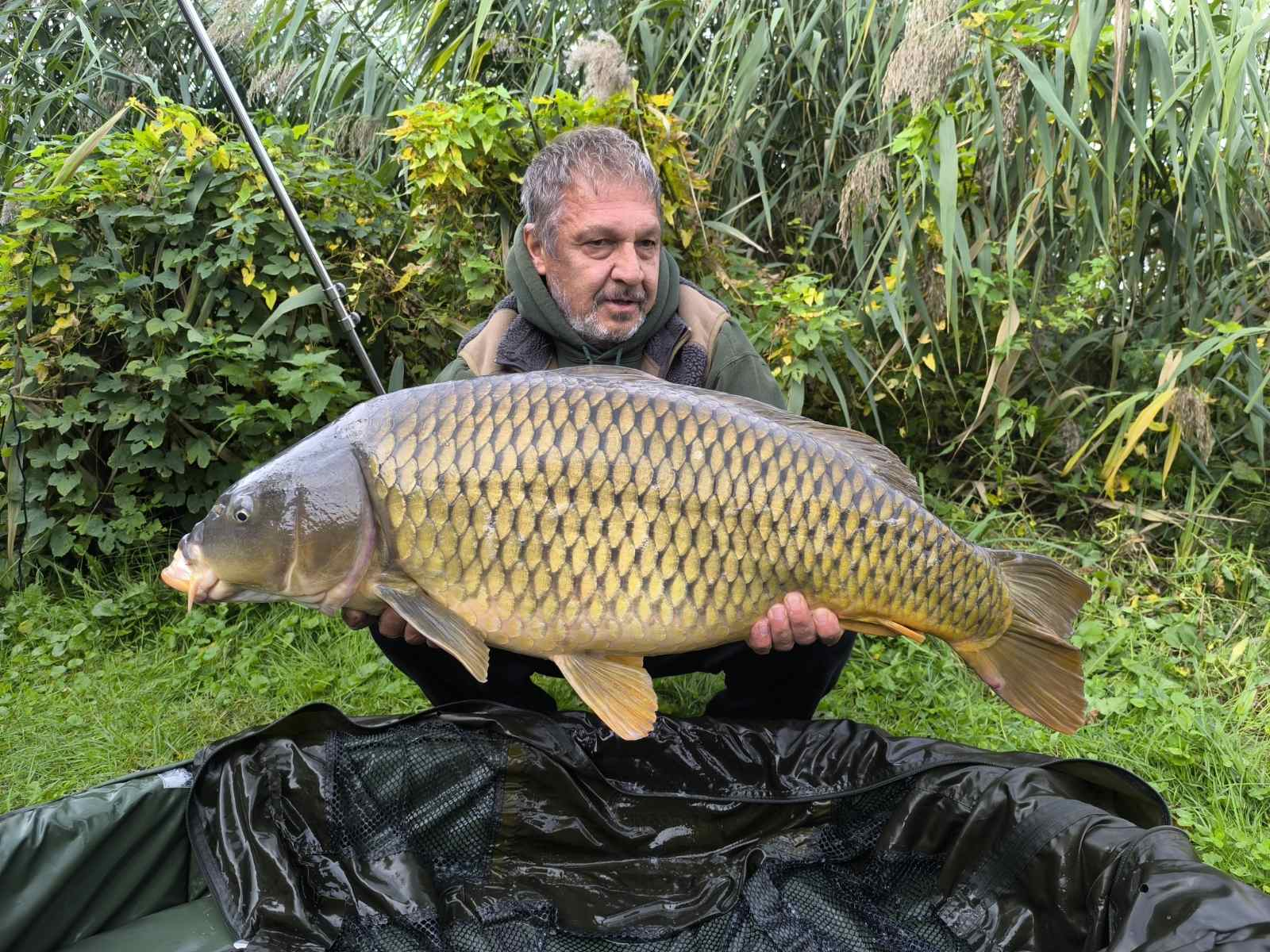 3 m-es 2,5 lbs bot, 0.35-ös monofil zsinór, 4-es horog. Bojli csali és etetés. Szeles, hideg idő, 15 perces fárasztás csónakból.