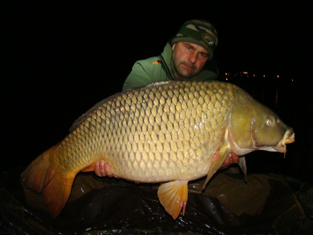 Több kisebb ponty kifogása után a szürkületben a nyeletőfék hangjára lettem figyelmes. A bot kézbevétele után éreztem,hogy nagy hallal van dolgom.