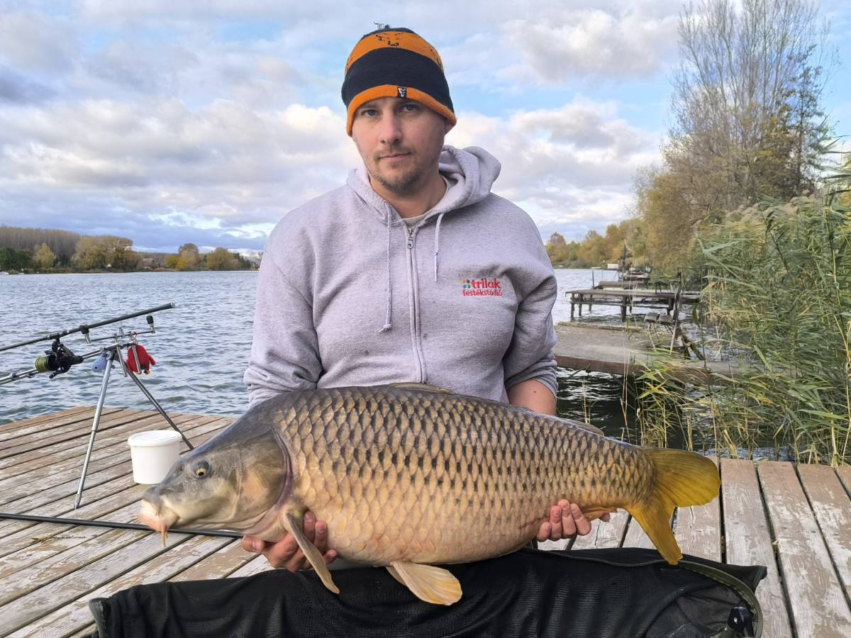 3,6 m-es 3,0 lbs bot, 0,35-ös monofil zsinór, 4-es horog. Erős nyugati szél, 30 perces fárasztás partról.