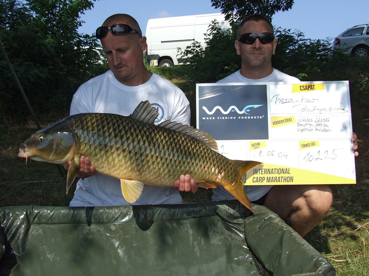 Pap Gábor a Tisza-tó Abádszalóki-medencéjében az ICM Tisza-tó horgászverseny ideje alatt (2018.06.04-én) csalta horogra a képen látható pontyot. Az etetésen elhelyezett bojli csali hozta ezt a gyönyörű halat. Természetesen ahogyan a verseny összes többi hala is, ez a pikkelyes is visszanyerte szabadságát a mérlegelés és fotózás után.