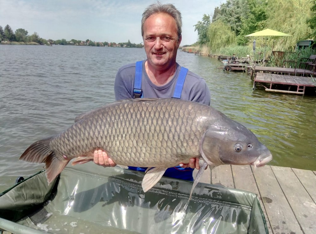 3,9 m-es feeder bot, 0.30-as monofil zsinór, 8-as horog. Csali: gumi kukorica és tigrismogyoró. Napos idő, szélcsend.
