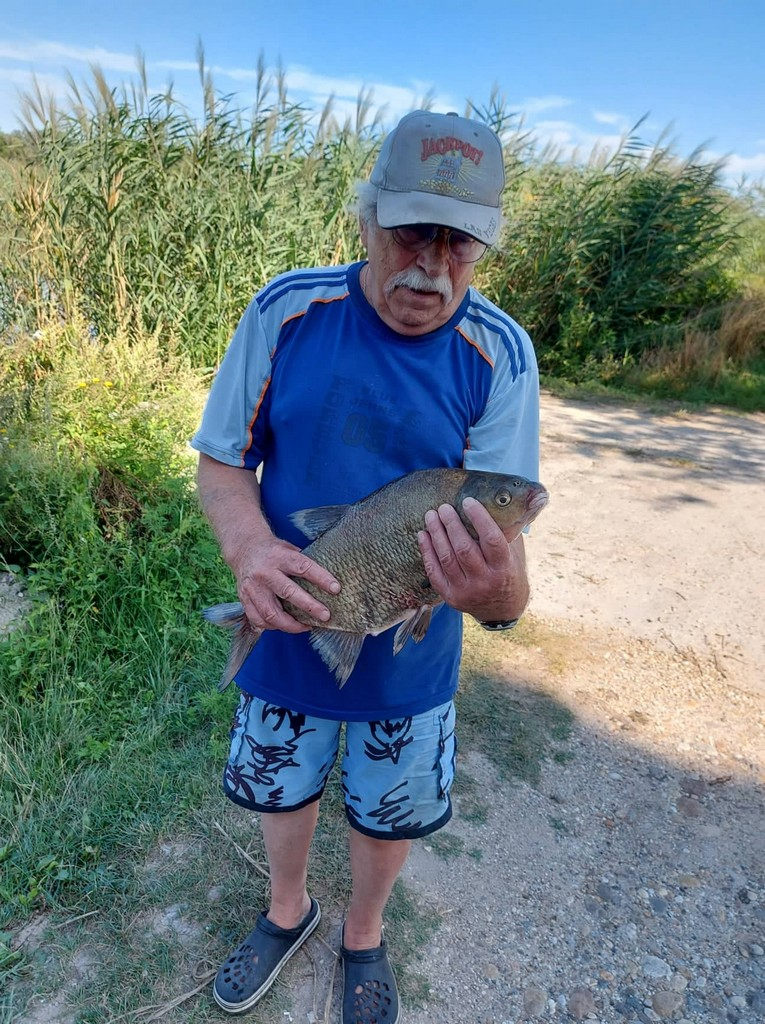 3,6 m-es feeder bot, 0.20-as monofil zsinór, 4-es horog. Mézes pufi csali, etetés száraz kenyérrel és búzadarával. Napos idő, enyhe szél, 3 perces fárasztás.