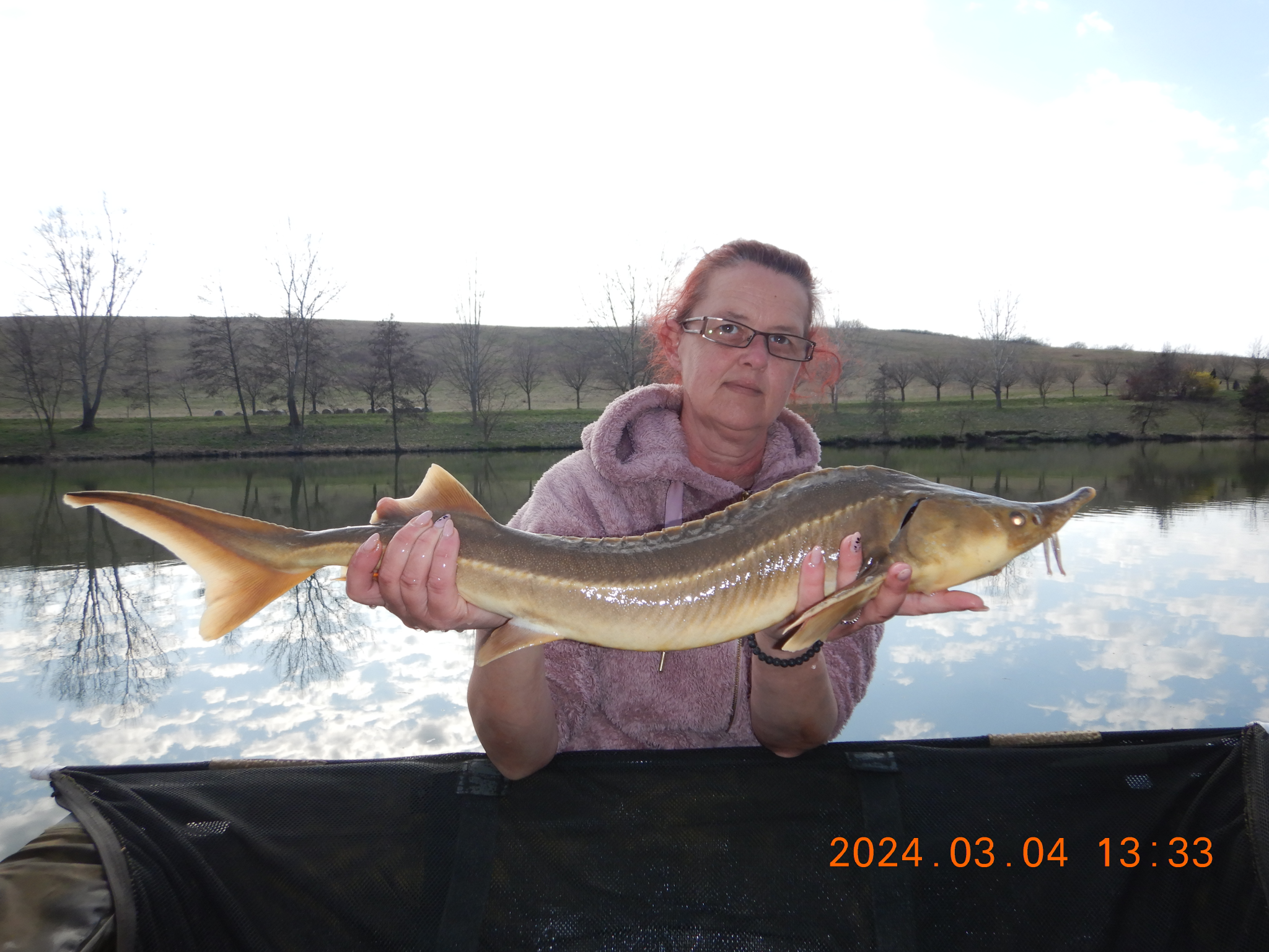 0.30-as monofil zsinór, 4-es horog. Bojli csali és etetés. Fehős idő, 20 perces fárasztás csónakból.