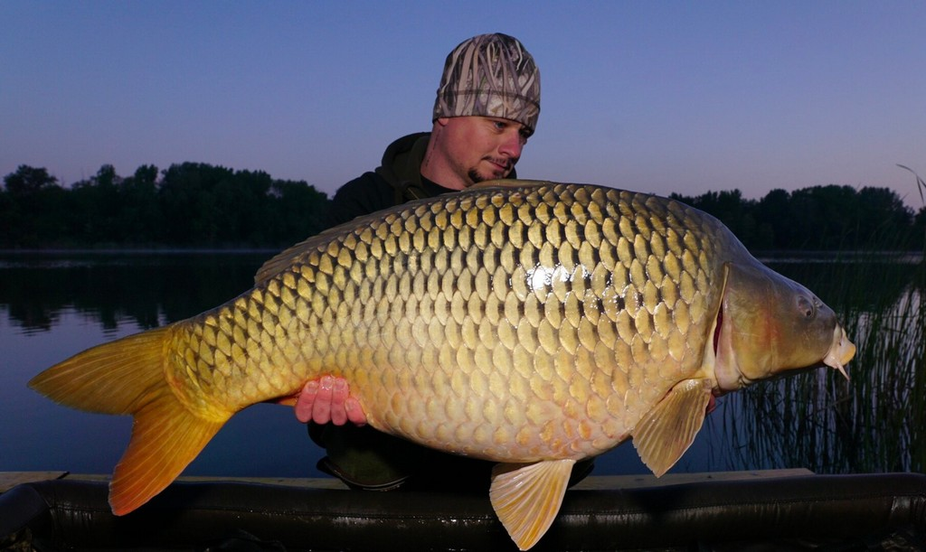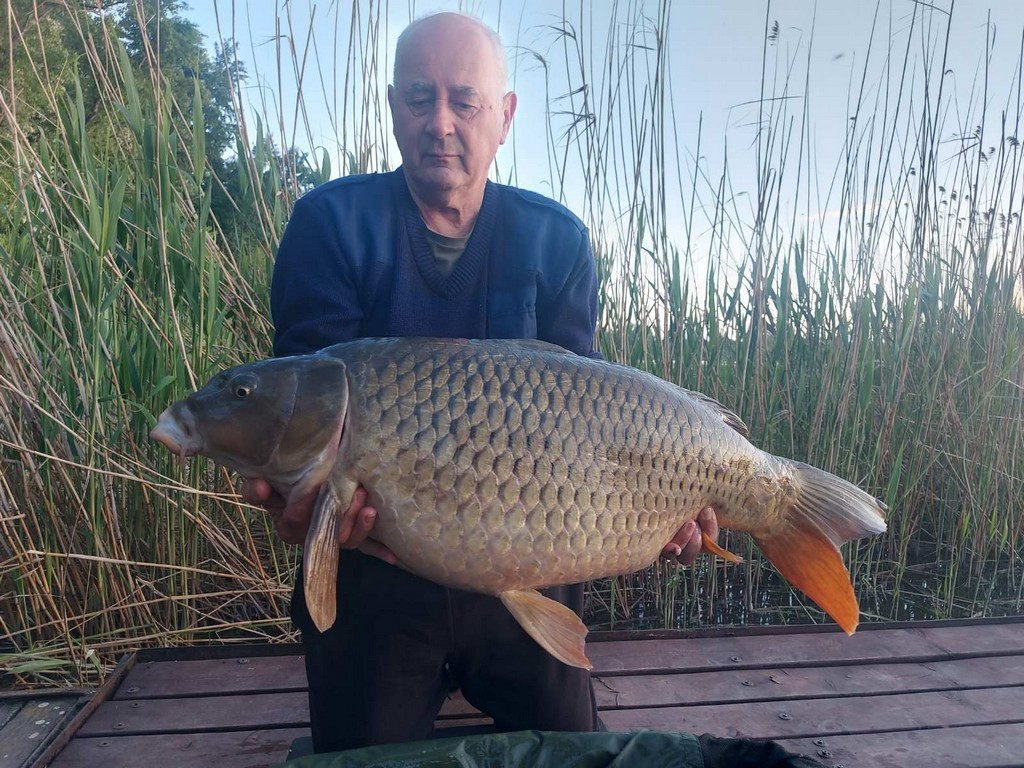 3 m-es 3,5 lbs bot, 0.30-as monofil zsinór, 4-es horog. Bojli csali és etetés. Napos idő, szélcsend, 15 perces fárasztás csónakból.