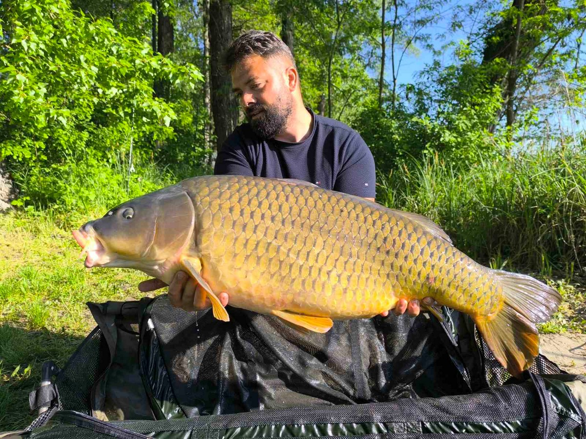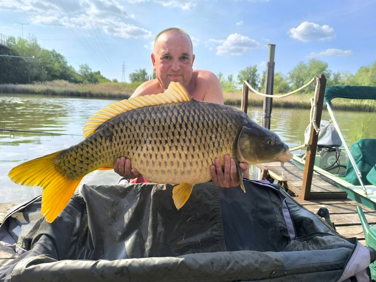 3,6 m-es 3,6 lbs bot, 0,30-as monofil zsinór, 4-es horog. Bojli csali és etetés. Napos, szeles idő, 15 perces fárasztás partról.