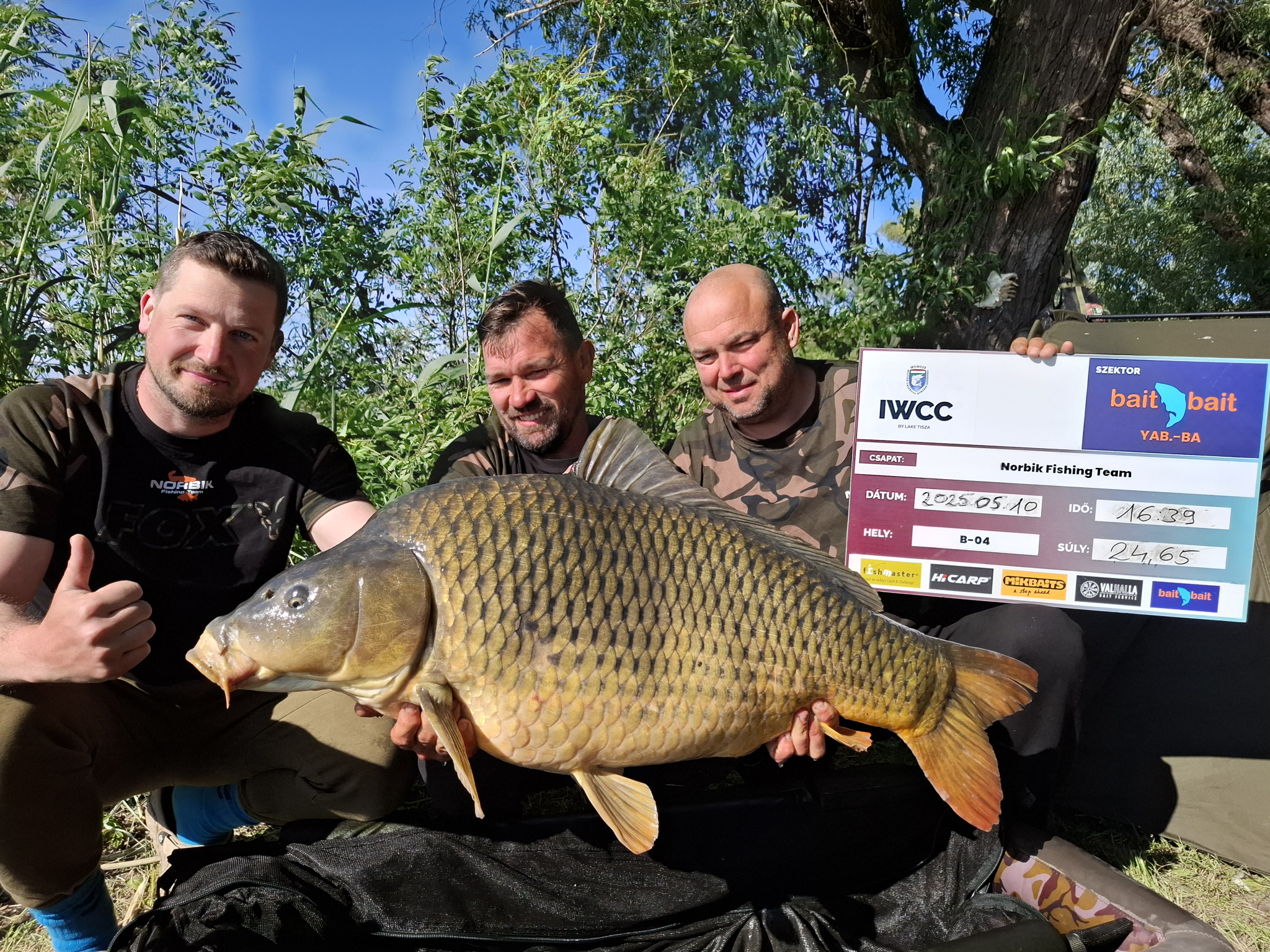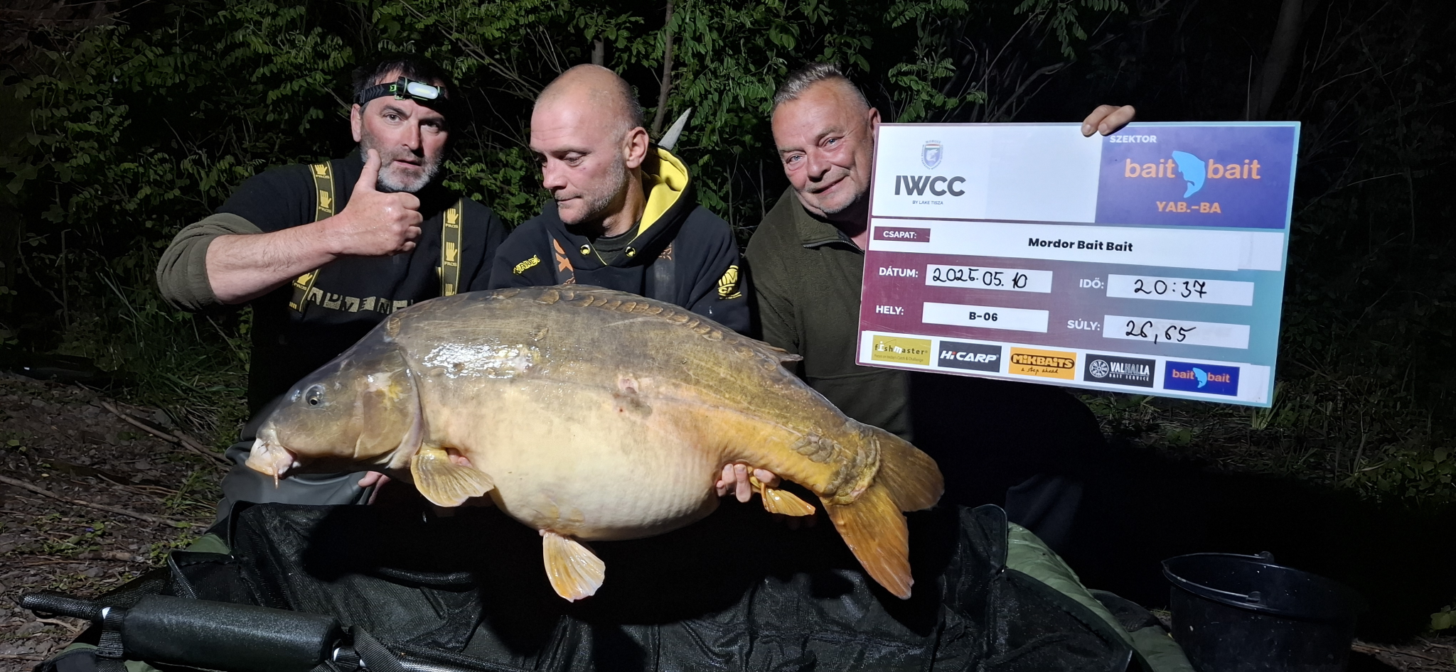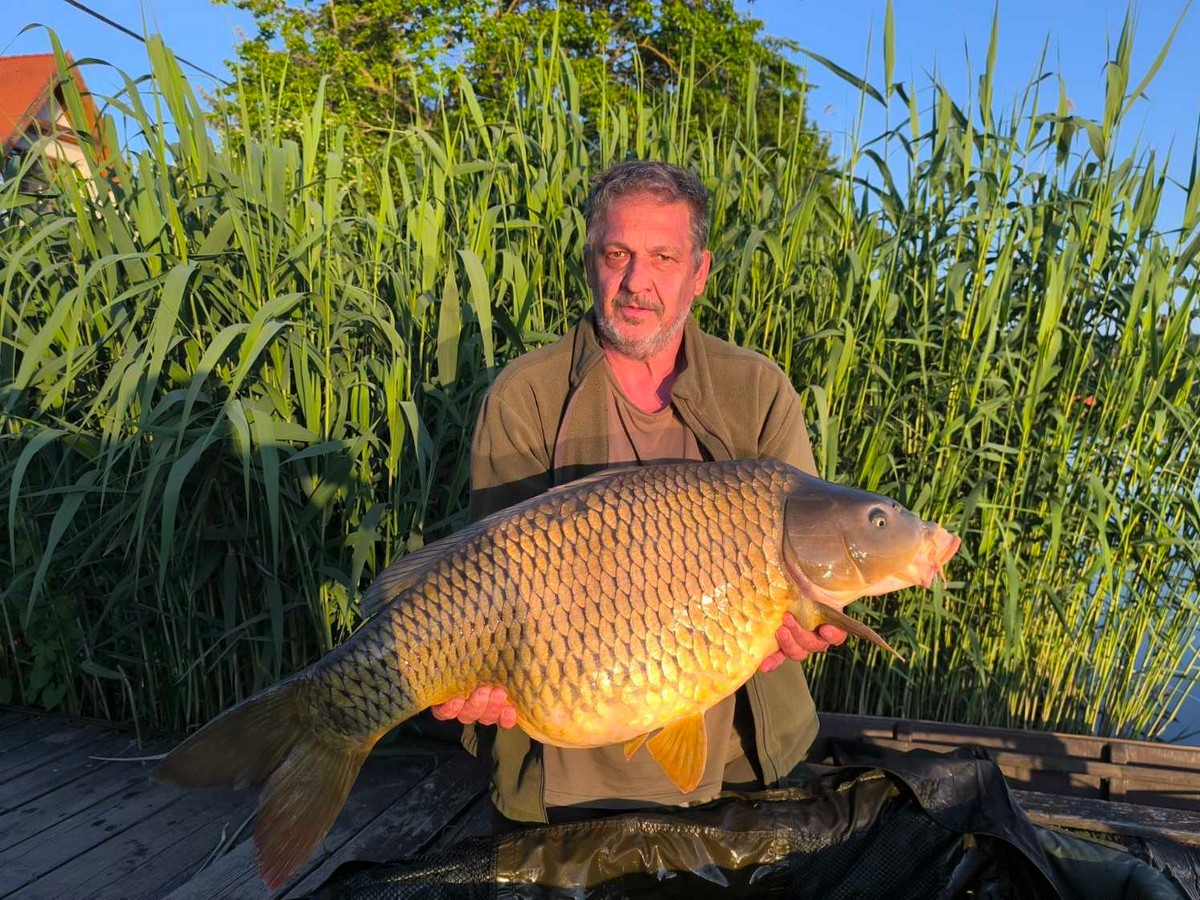 3,6 m-es 3,25 lbs bot, 0.30-as monofil zsinór, 4-es horog. Bojli csali és etetés. Hűvös idő, szélcsend, 15 perces fárasztás partról.