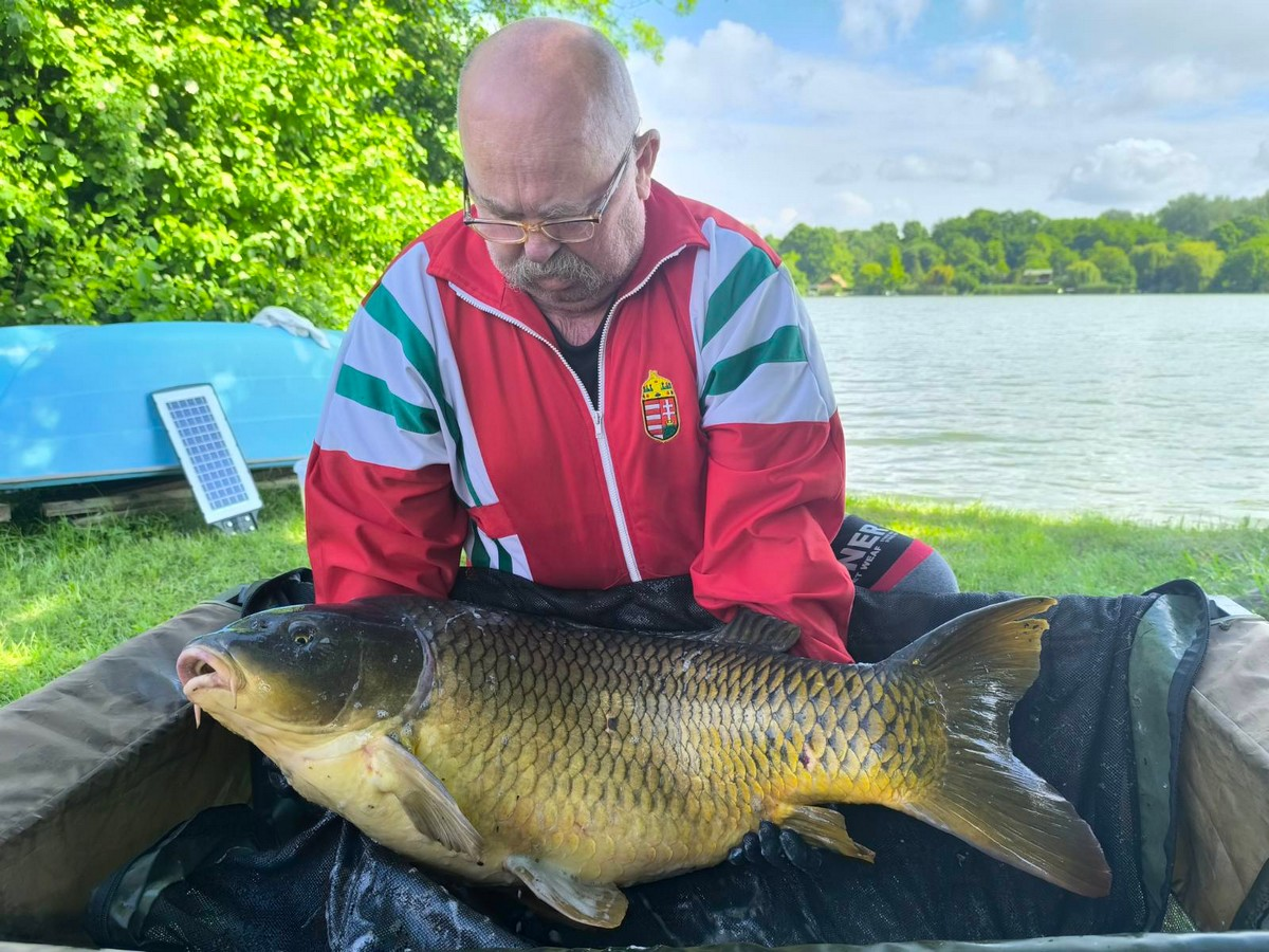 3,9 m-es 3,5 lbs bot, 0,30-as monofil zsinór, 4-es horog. Derült idő, szélcsend, 10 perces fárasztás partról.