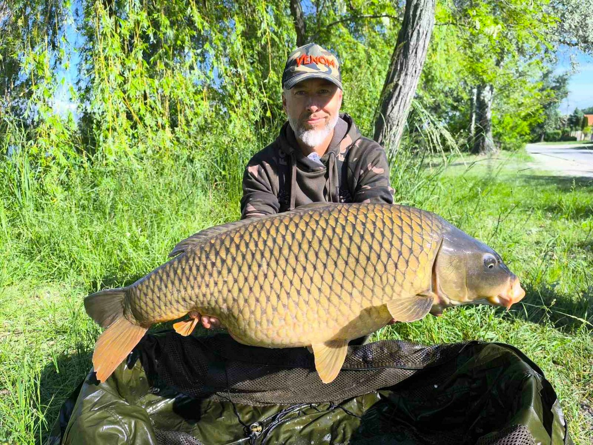 3,9 m-es bot, 0,28-as monofil zsinór, 4-es horog. Bojli csali és etetés. Szeles, hűvös idő, 30 perces fárasztás.