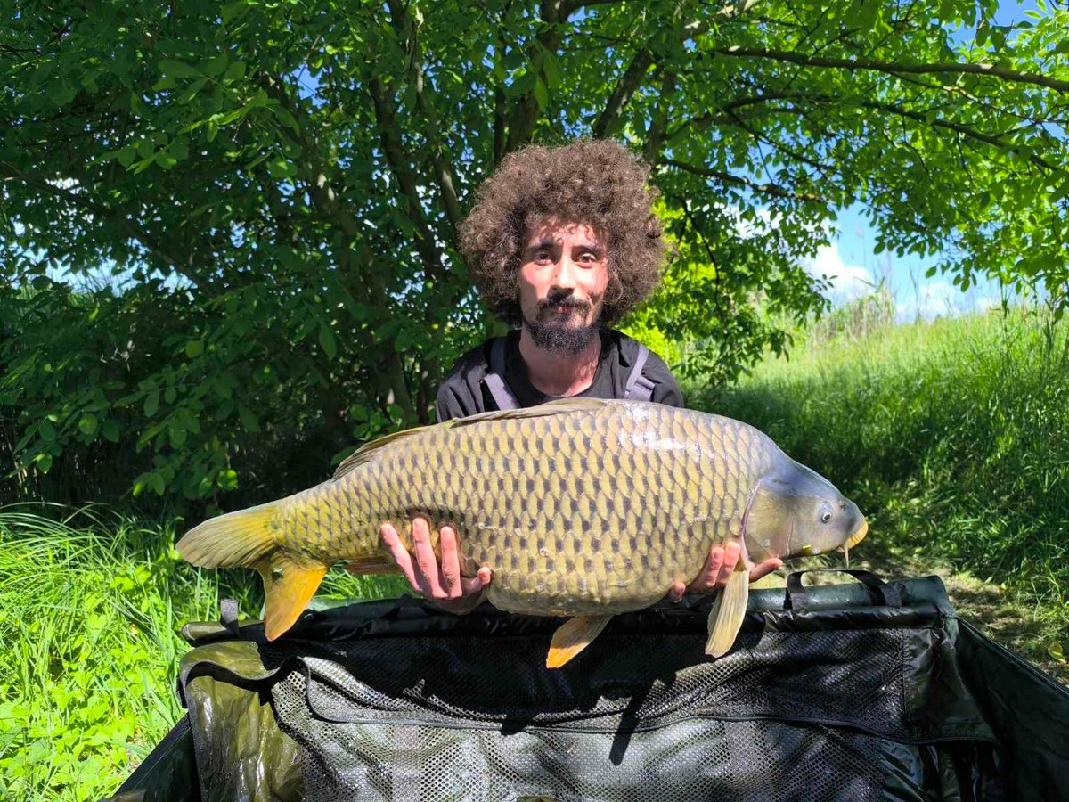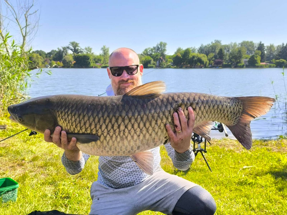 4 m-es feeder bot, 0,30-as monofil zsinór, 6-os horog. Bojli csali, etetés magvakkal. Napos, szeles idő, 15-20 perces fárasztás partról.