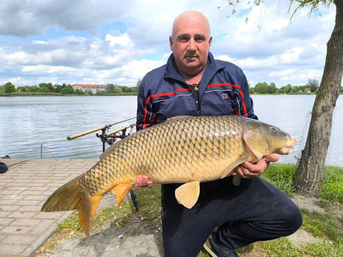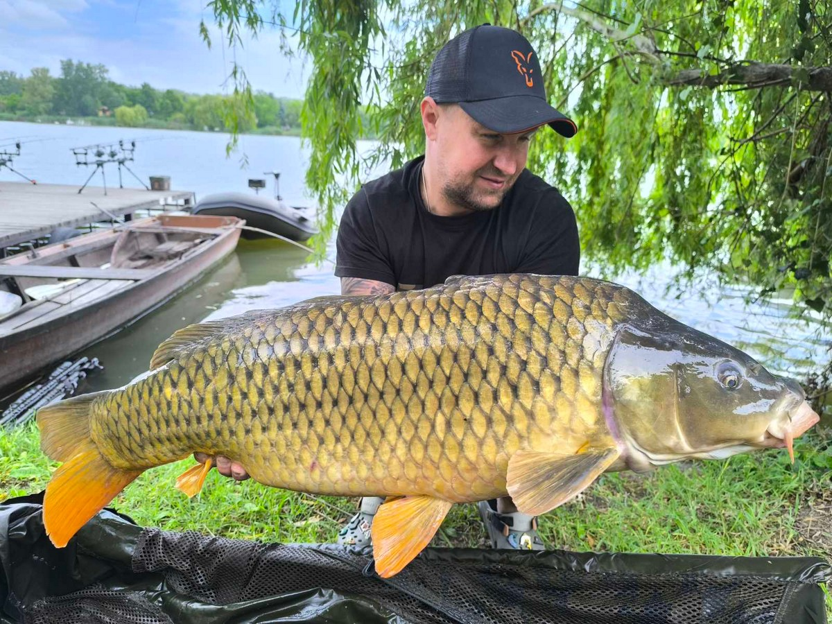 3,6 m-es 3,0 lbs bot, 0,28-as monofil zsinór, 6-os horog. Kukorica és csonti csali, etetés főzött kukoricával. Borús, szeles idő, 10 perces fárasztás partról.