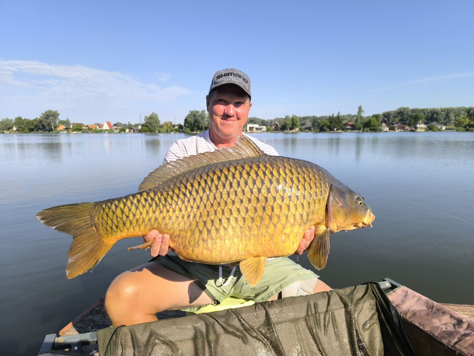 0,30-as monofil zsinór, 4-es horog. Derült idő, szélcsend, 30 perces fárasztás csónakból.