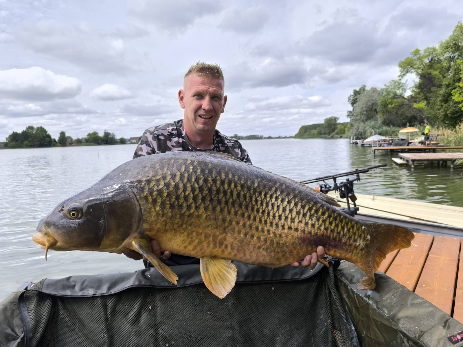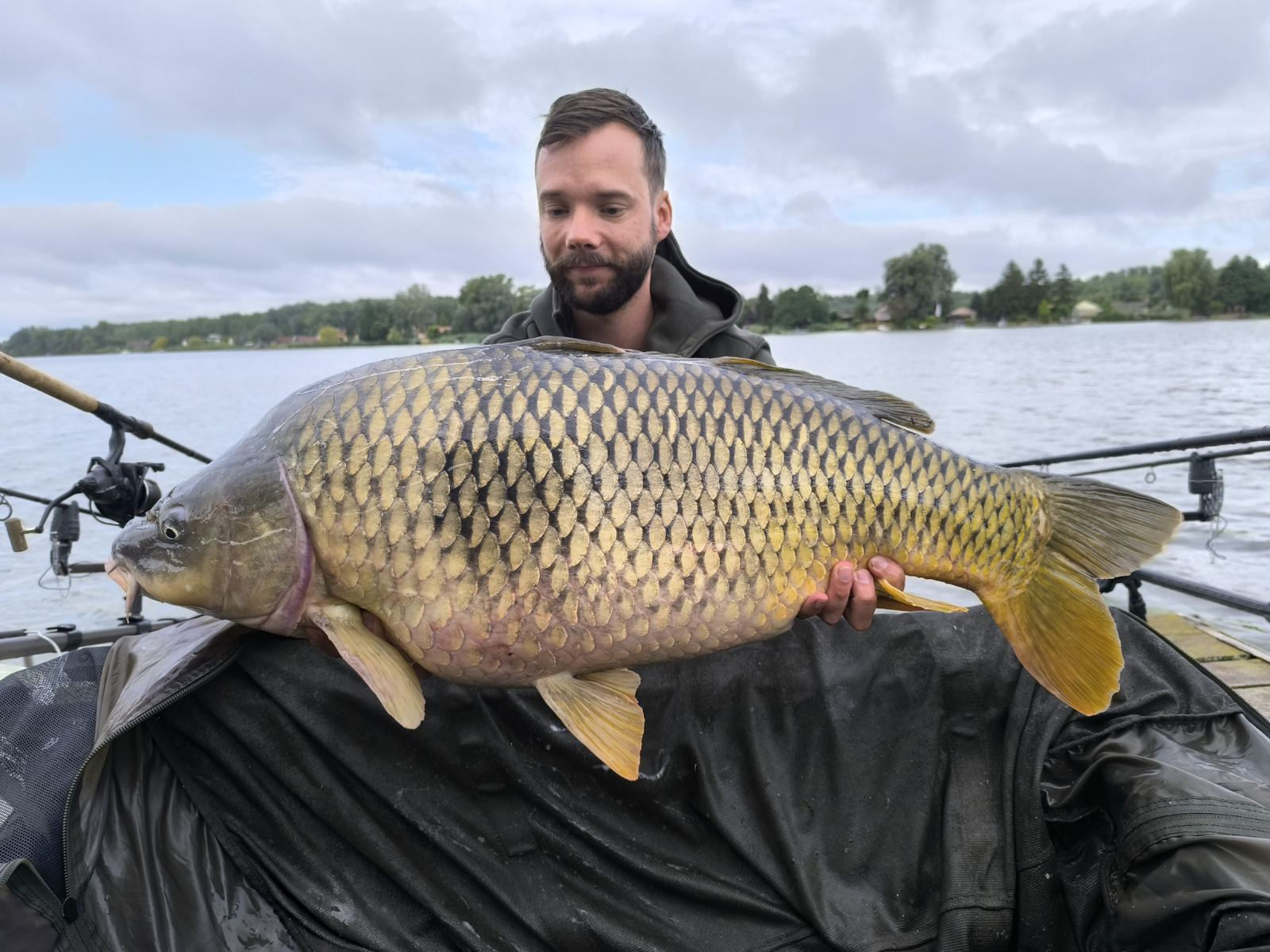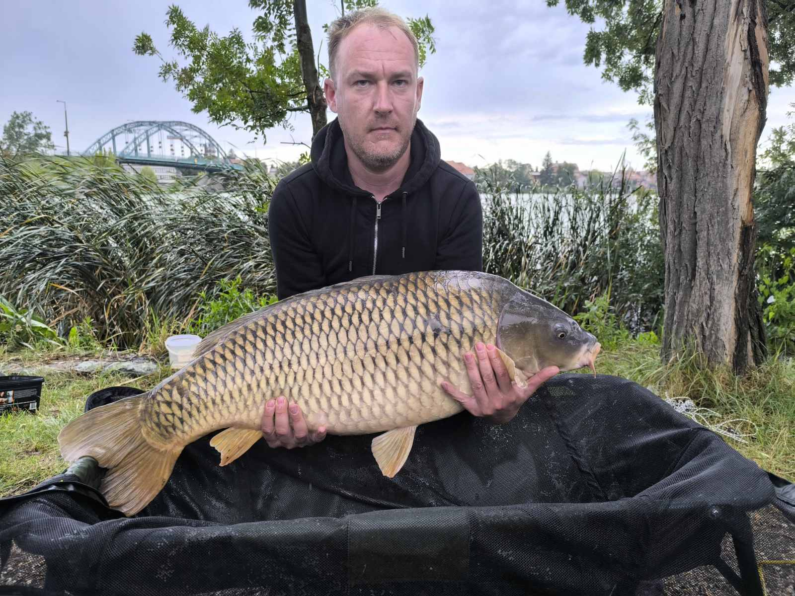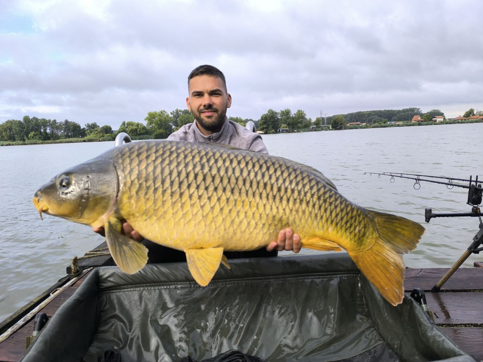 Feeder bot, 0,35-ös monofil zsinór, 4-es horog. Esős, szeles idő, 20 perces fárasztás partról.