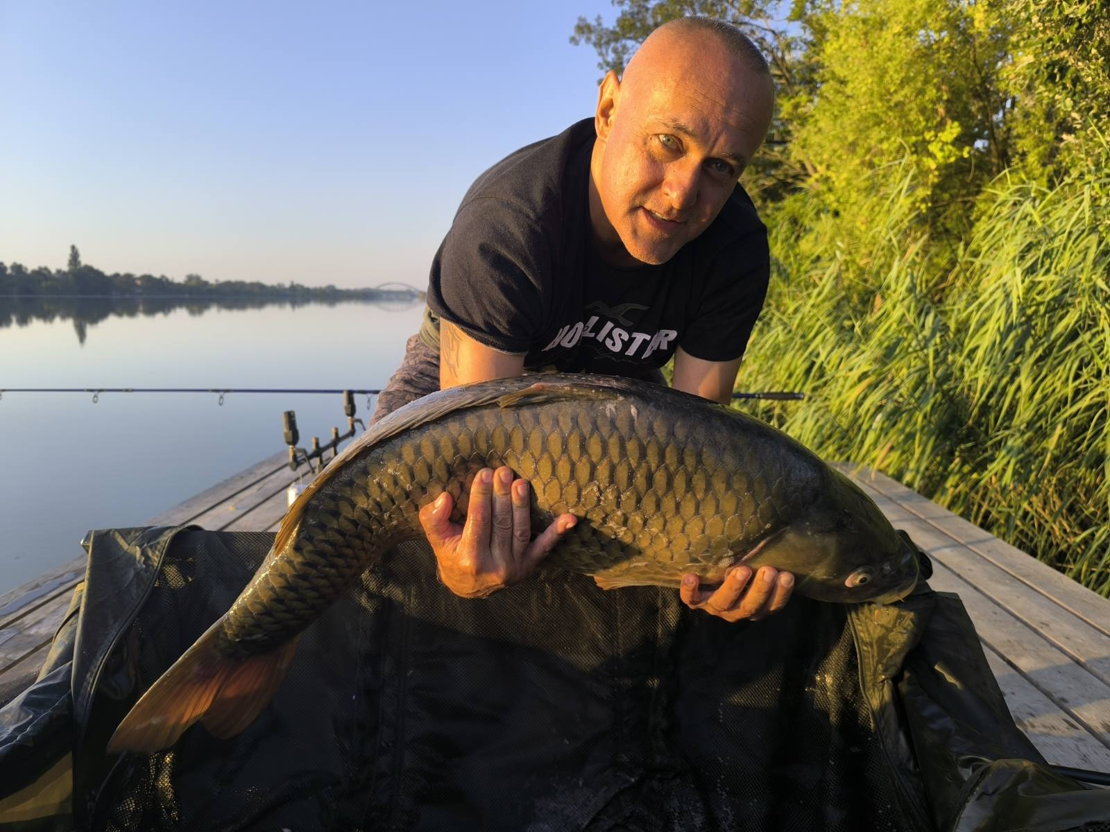 3,9 m-es 3,5 lbs bot, 0,25-ös monofil zsinór, 4-es horog. Bojli csali és etetés. Derült éjszaka, szélcsend, 3 perces fárasztás partról.