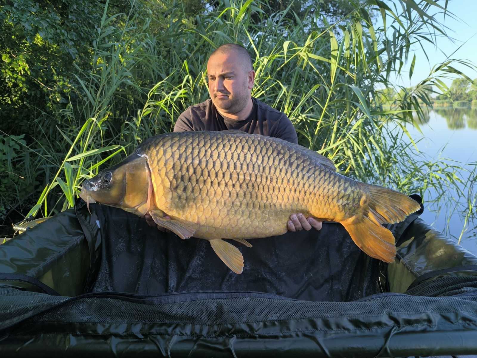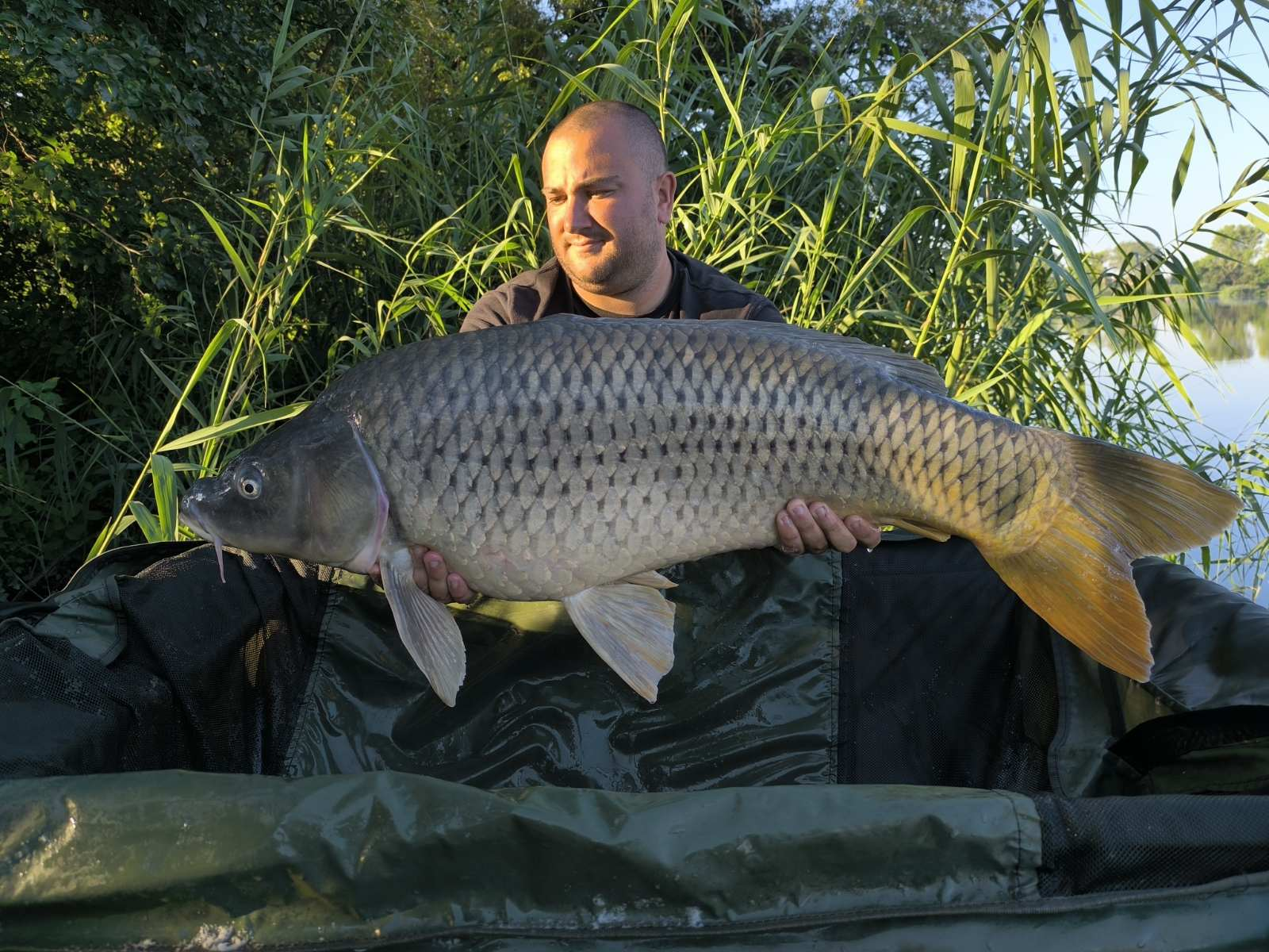 3,6 m-es 3,5 lbs bot, 0, 32-es monofil zsinór, 4-es horog. Kukorica csali és etetés. Napos idő, szélcsend, 20 perces fárasztás partról.