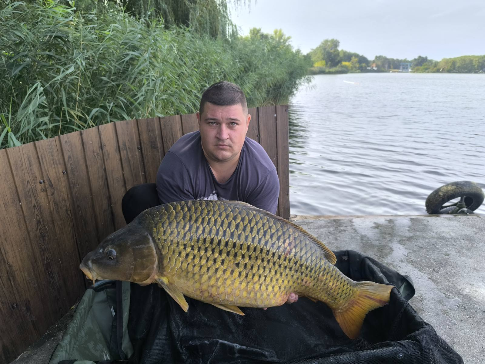 3,9 m-es 3,5 lbs bot, 0,27-es monofil zsinór, 4-es horog. Kukorica csali, etetés magvakkal. Borús idő, 25 perces fárasztás partról.