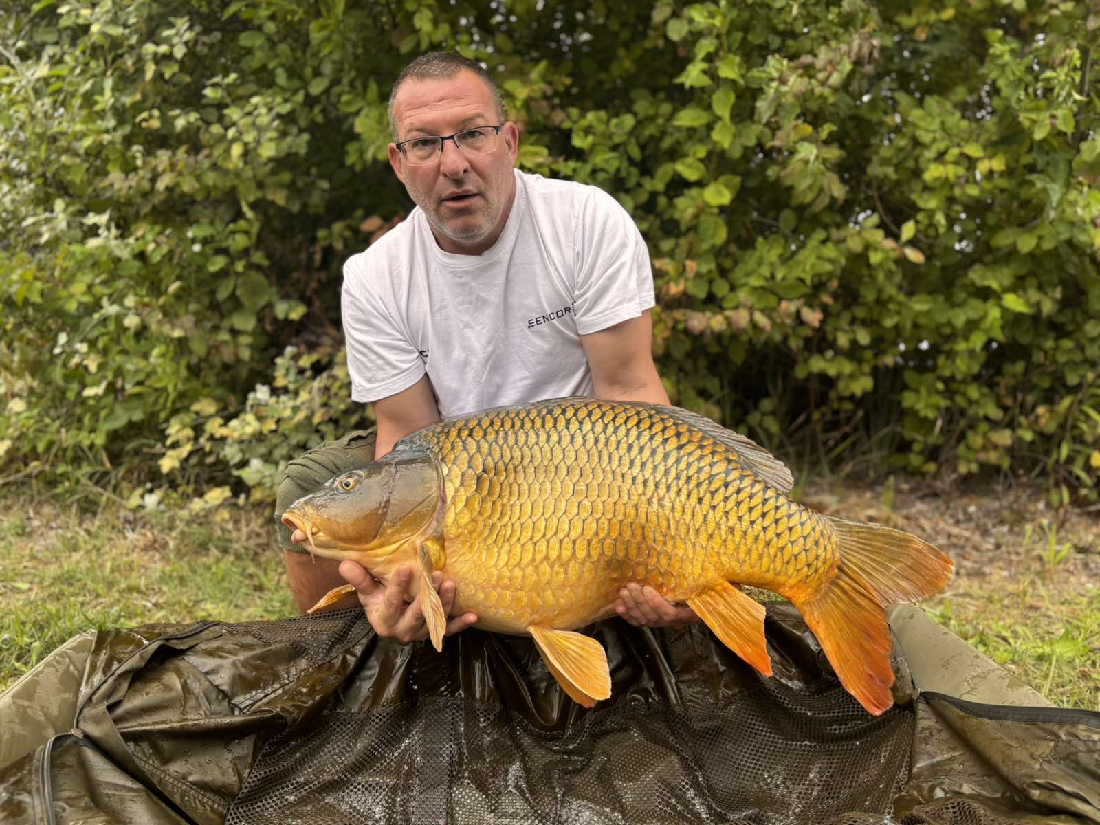 0,35-ös monofil zsinór, 4-es horog. Esős idő, 15 perces fárasztás partról.