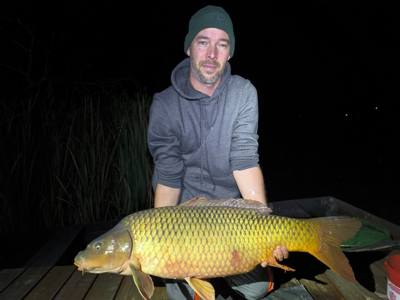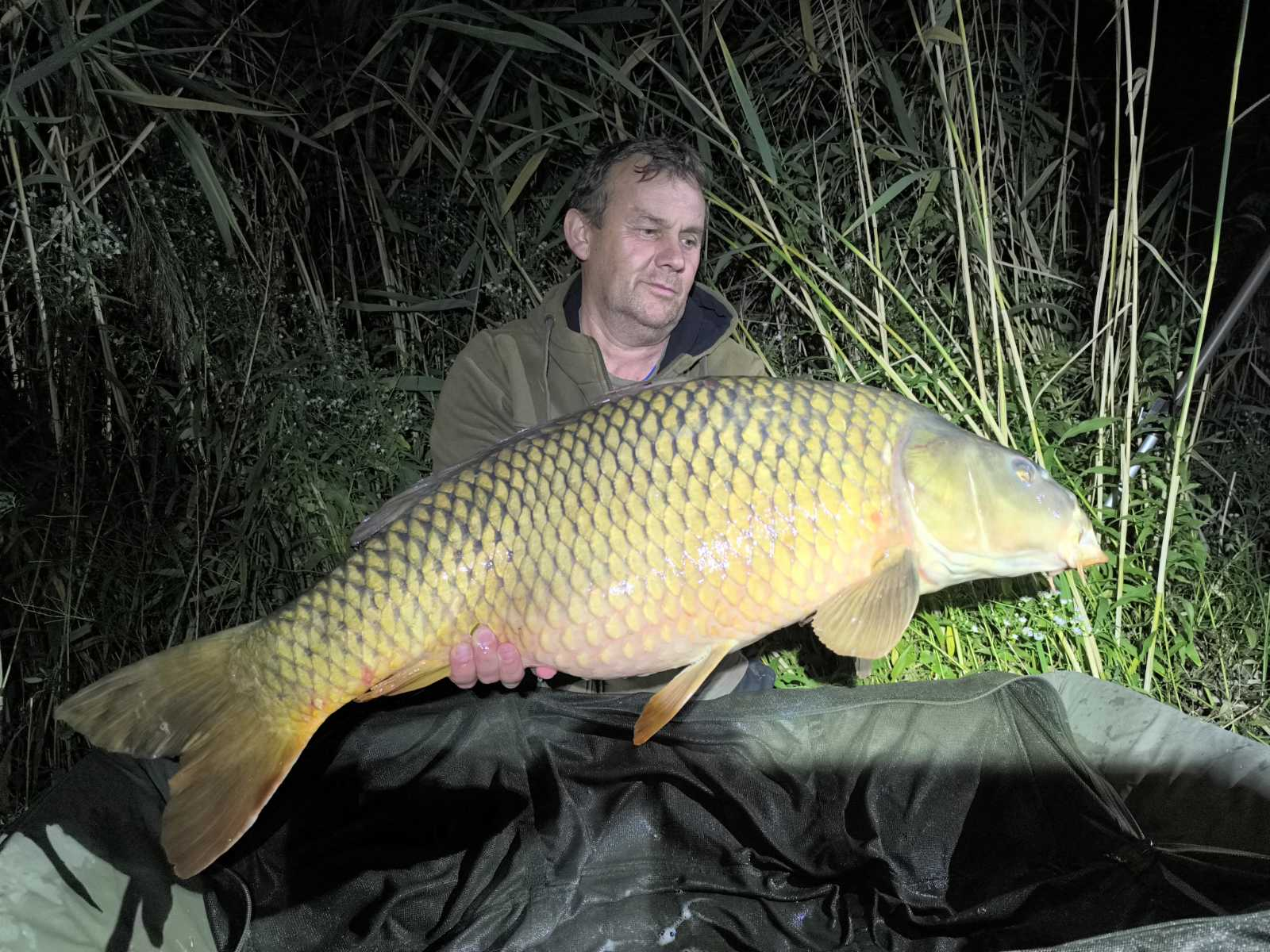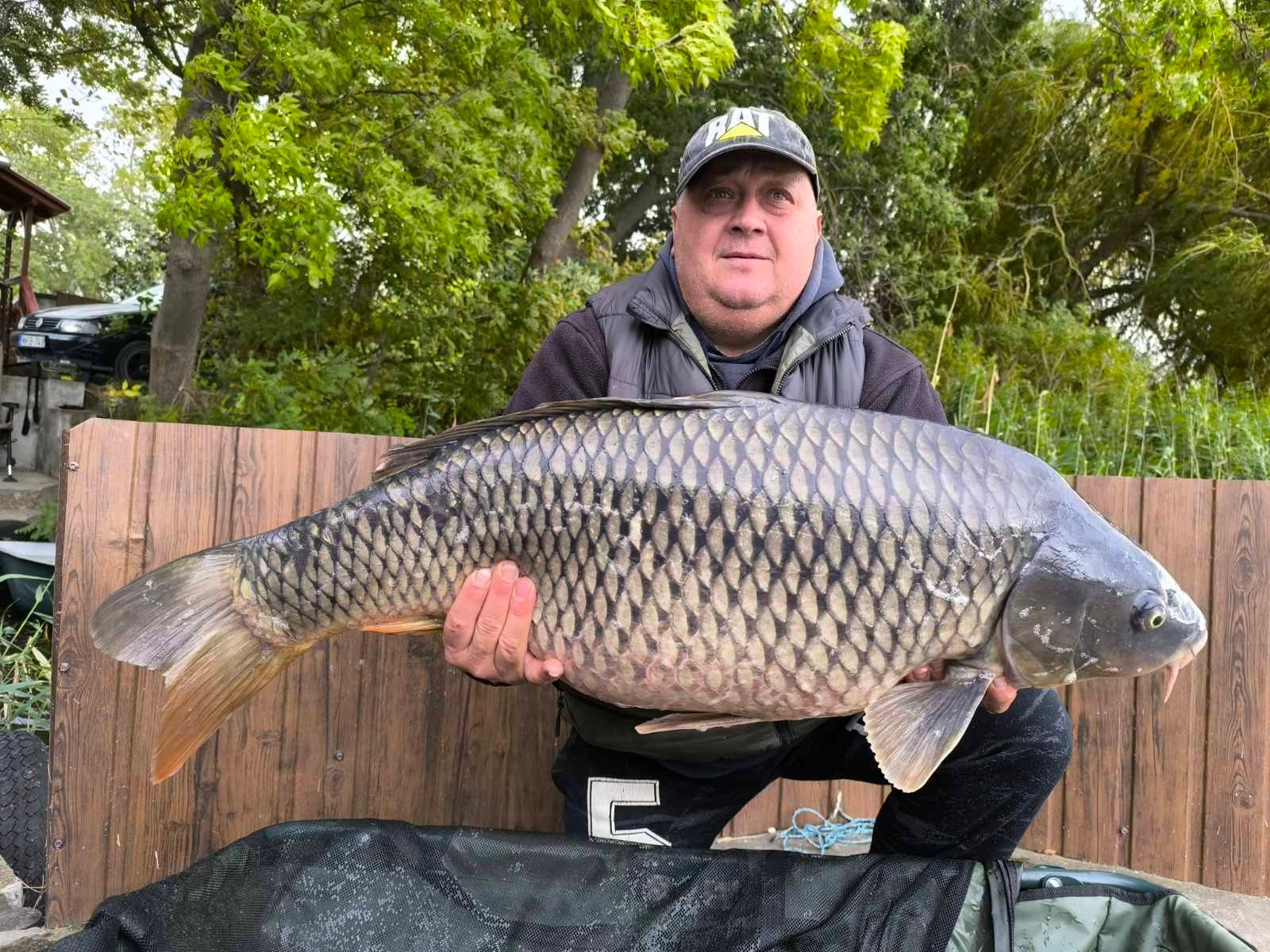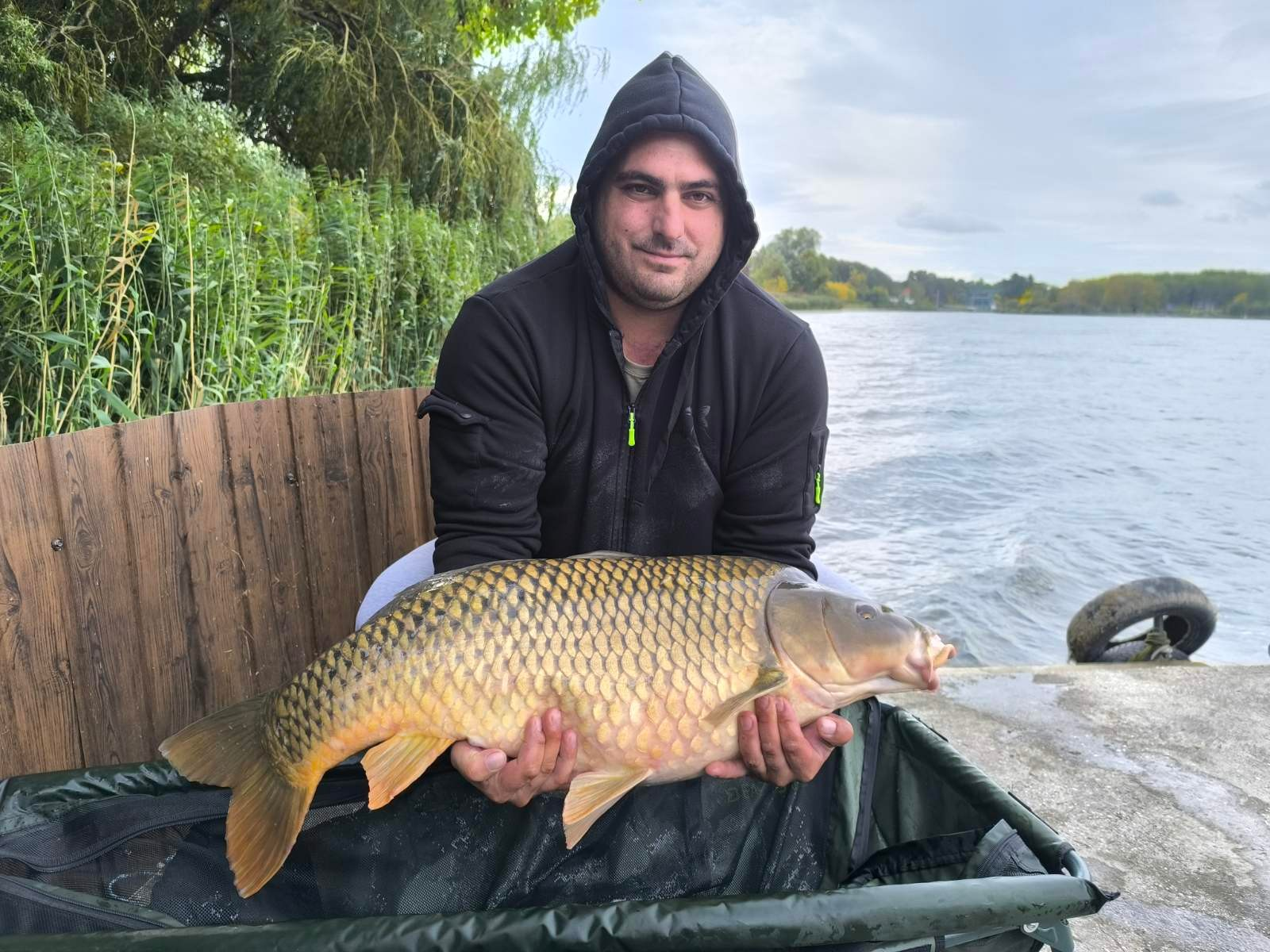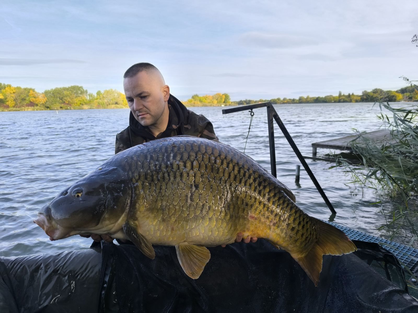 3,6 m-es 3,0 lbs bot, 0,35-ös monofil zsinór, 4-es horog. Bojli csali és etetés. Hűvös, szeles idő, 20 perces fárasztás partról.