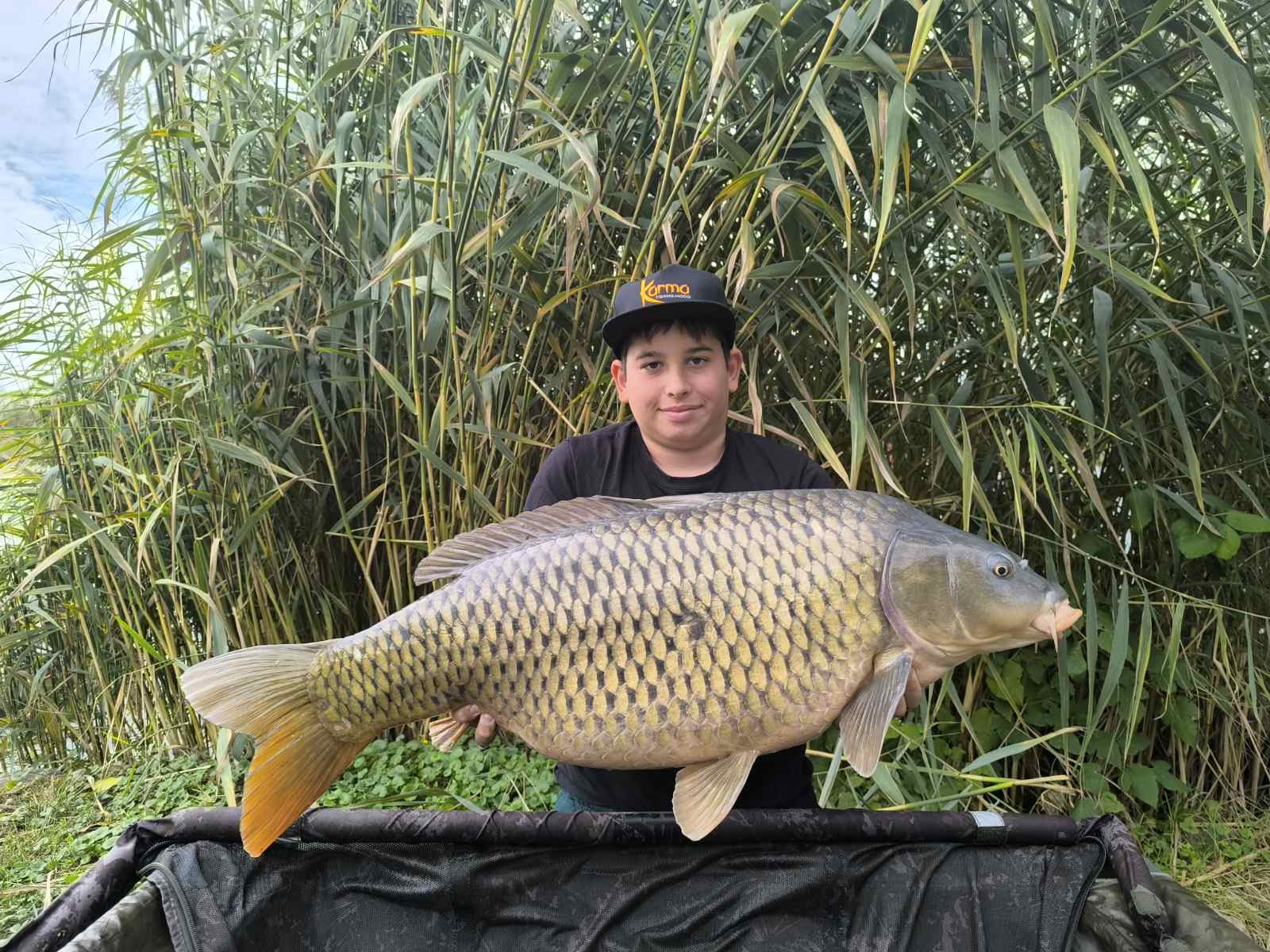 3,9 m-es 150 grammos feeder bot, 0,28-as monofil zsinór, 12-es horog. Gumikukorica csali, etetés kukoricával. Borús idő, gyenge északi szél, kb. 10-15 perces fárasztás partról.