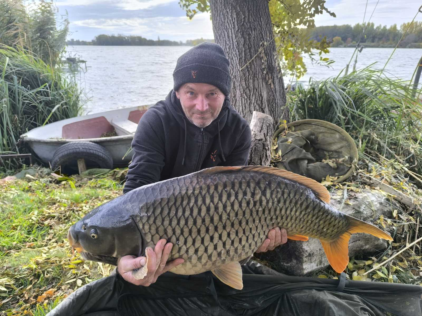 3,6 m-es 3,0 lbs bot, 4-es horog. Bojli csali és etetés. Hűvös idő, parti fárasztás.