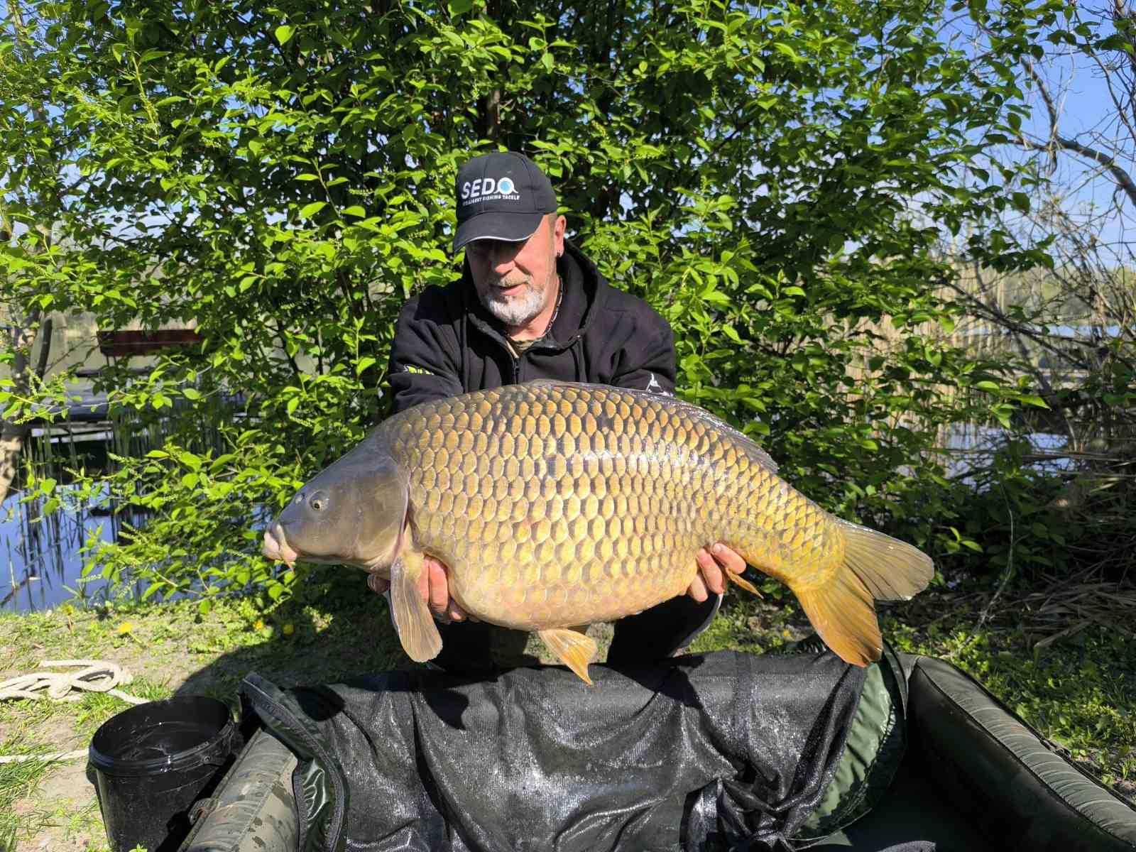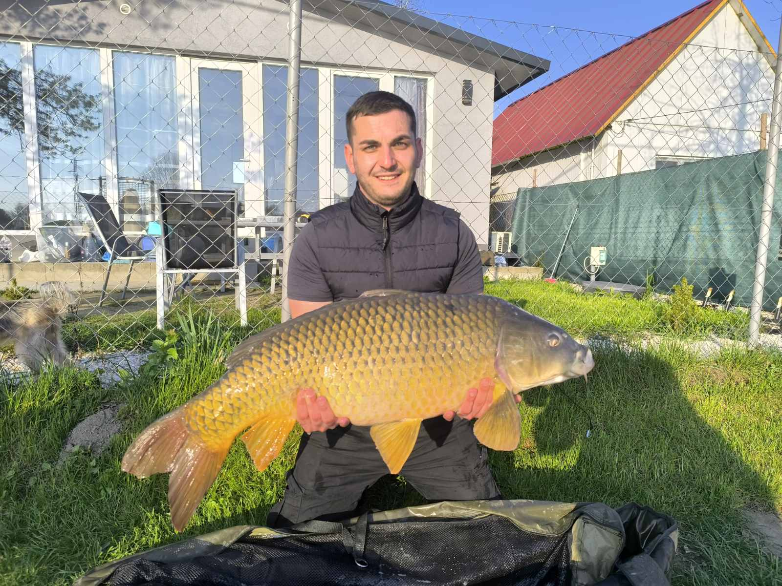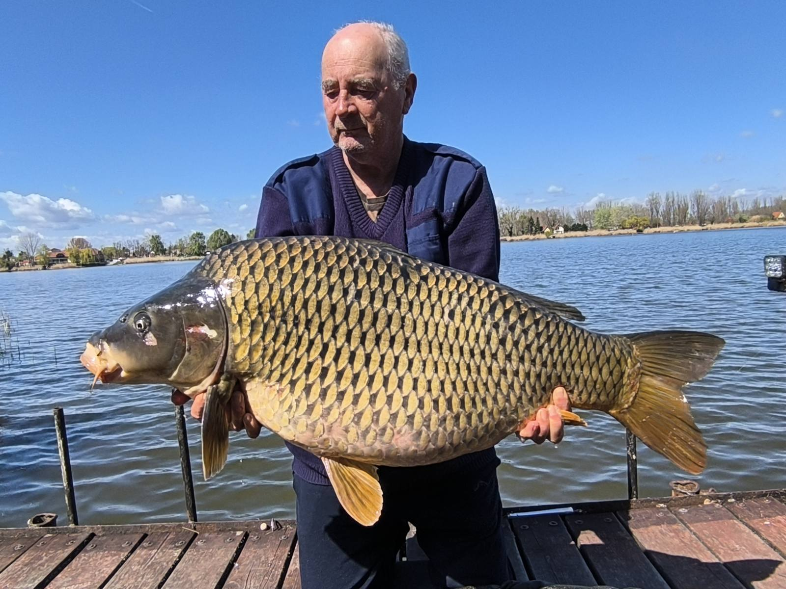 3,6 m-es 3,5 lbs bot, 0,40-es monofil zsinór, 4-es horog. Bojli csali és etetés. Derült idő, szélcsend.