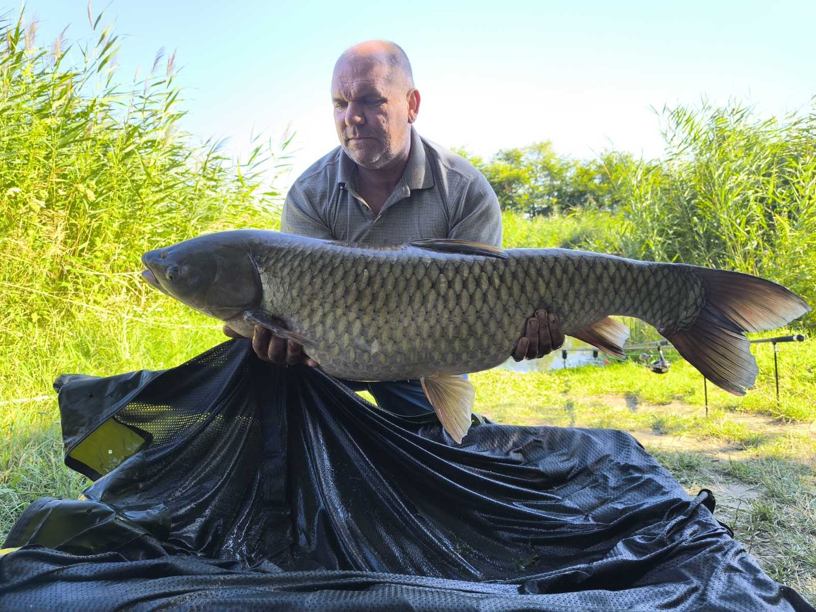 3,9 m-es 3,0 lbs bot, 0,35-ös monofil zsinór, 2-es horog. Büdös kukorica csali, etetés tigrismogyoróval. Napos idő, gyenge szél, 60 perces fárasztás partról.