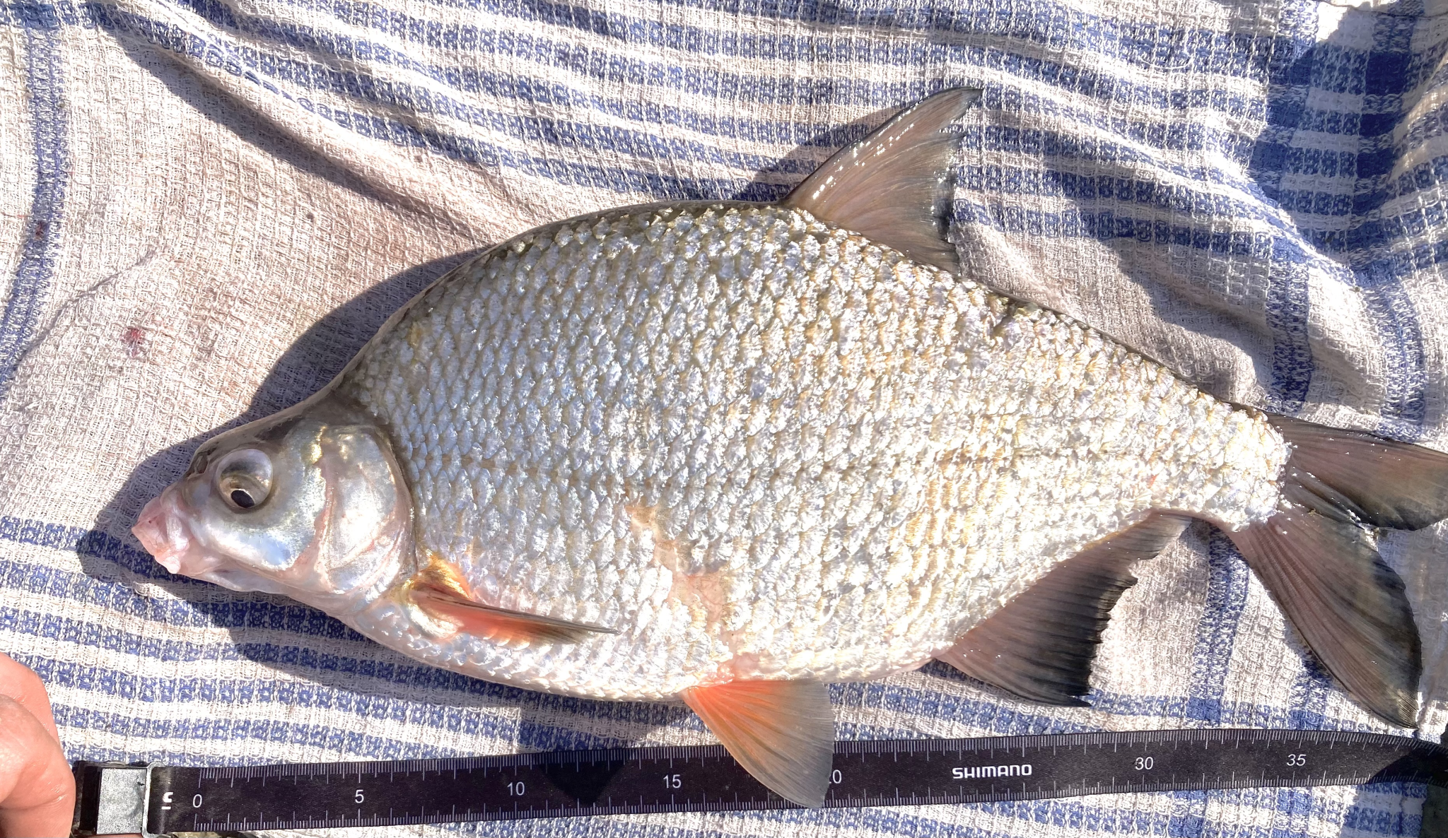 Napos, szélcsendes időben úsztatva, kenyérrózsa csalival sikerült fognom.