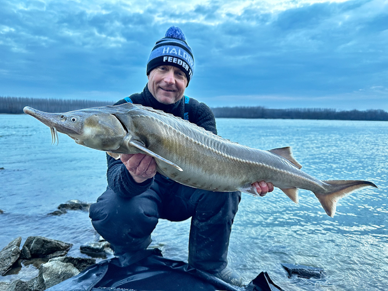 Folyóvízi feeder végszerelékkel és gumikukorica csalival pontyozott, amikor nagy meglepetésére ez a hal köszönt be. Rövid fárasztás után került merítőhálóba élete eddigi legnagyobb kecsegéje.