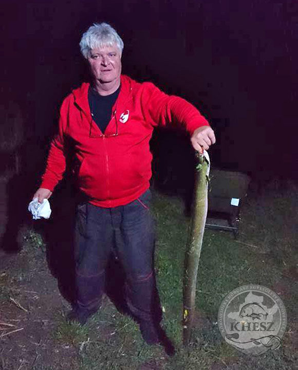 Az esti órákban erőteljes rablótevékenységre lettünk figyelmesek. A rablásokból biztosan lehetett látni hogy nem harcsa, viszont miután csukával még nem találkoztunk, egy komolyabb süllőre gondoltunk horgásztársammal. Utólag is köszönöm neki a közreműködést. Pergetve próbáltunk meg a „dolog végére járni”, de mihelyt, csónakkal megközelítettük a helyet a hal befejezte a táplálkozást. Éjszakára biztos, ami biztos, a helyszínre juttattunk egy stupekot, amin felkínáltunk egy kb. 20 cm es dévérkeszeget. A hajnali órákban „elfüstölt” a bot. A hal mozgásából biztos voltam benne hogy egy 5-8 kilós „babaharcsa”. Lassú, határozott, cammogós mozgás jellemezte a halat, sehol egy klasszikus csukamozgás, kiugrás... Az első felbukkanásnál lett hatalmas a meglepetés, valamint a riadalom. Ugyanis fonott előke volt a szerelék végén és nem fém. Innentől kezdve nagyon agresszíven kellett a halat a szák felé terelni attól tartva, hogy bármikor elszakadhat az előke. Szerencsére kitartott, de már nem sok volt neki hátra. Hatalmas volt az öröm. A csuka a mérlegelés után természetesen visszanyerte a szabadságát.